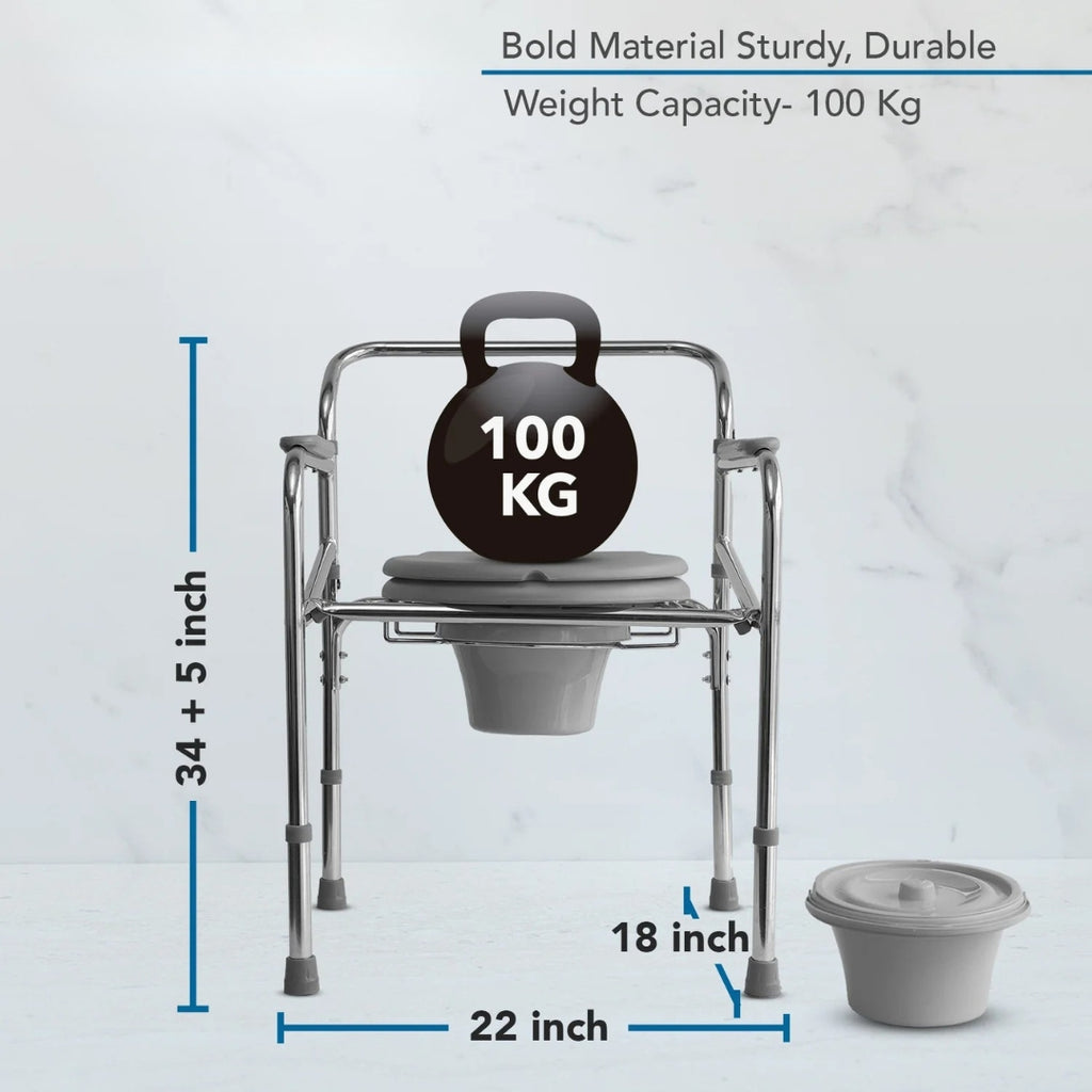 - This Foldable commode chair is suitable for the Elderly, Pregnant Women, Disabilities, Offers a limit of up to 100-110 kg.