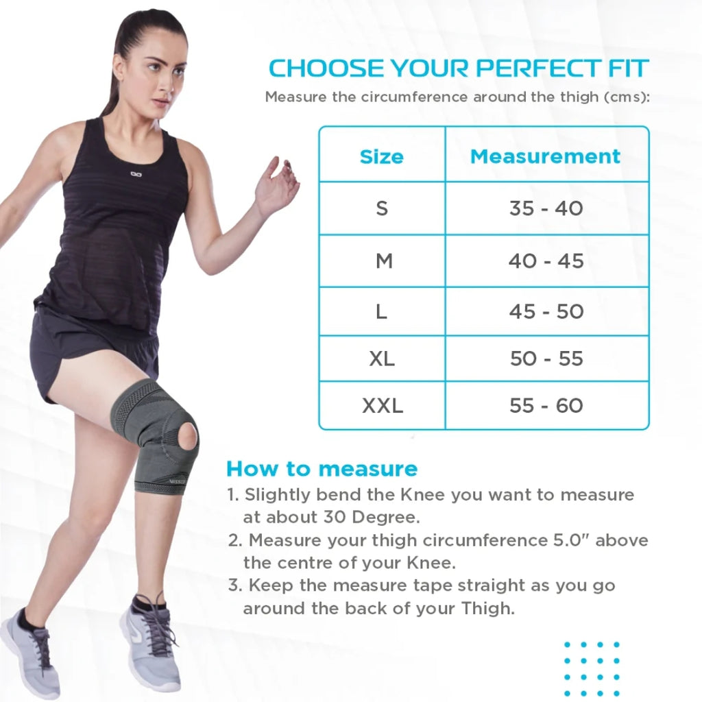 - To be worn so that the broad opening comes on the top & is placed on the thigh. The opening to come on the patella region