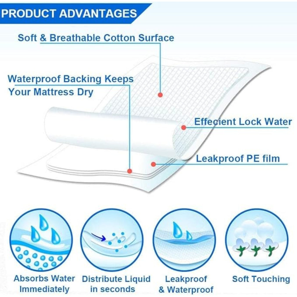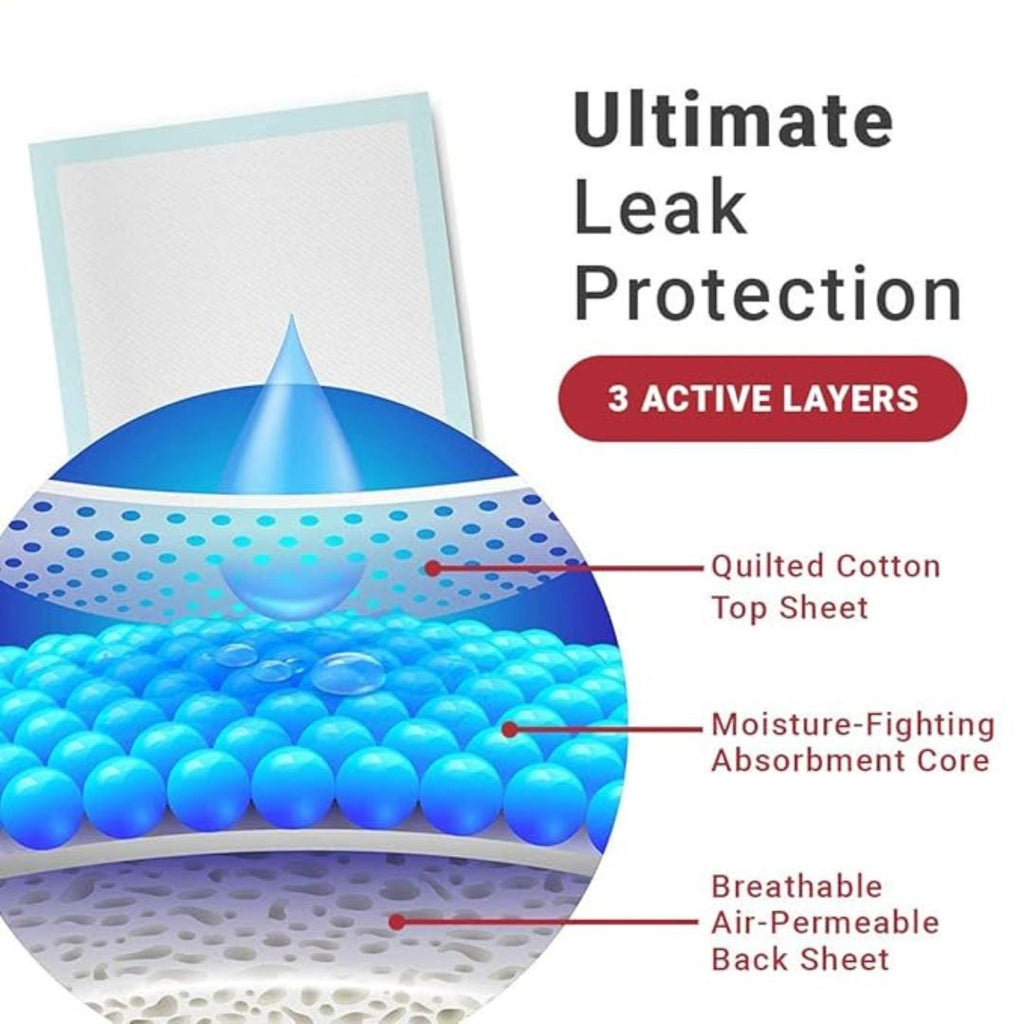 - High Absorbency: Each underpad can absorb up to 1000 ml of liquid, keeping you dry and comfortable.