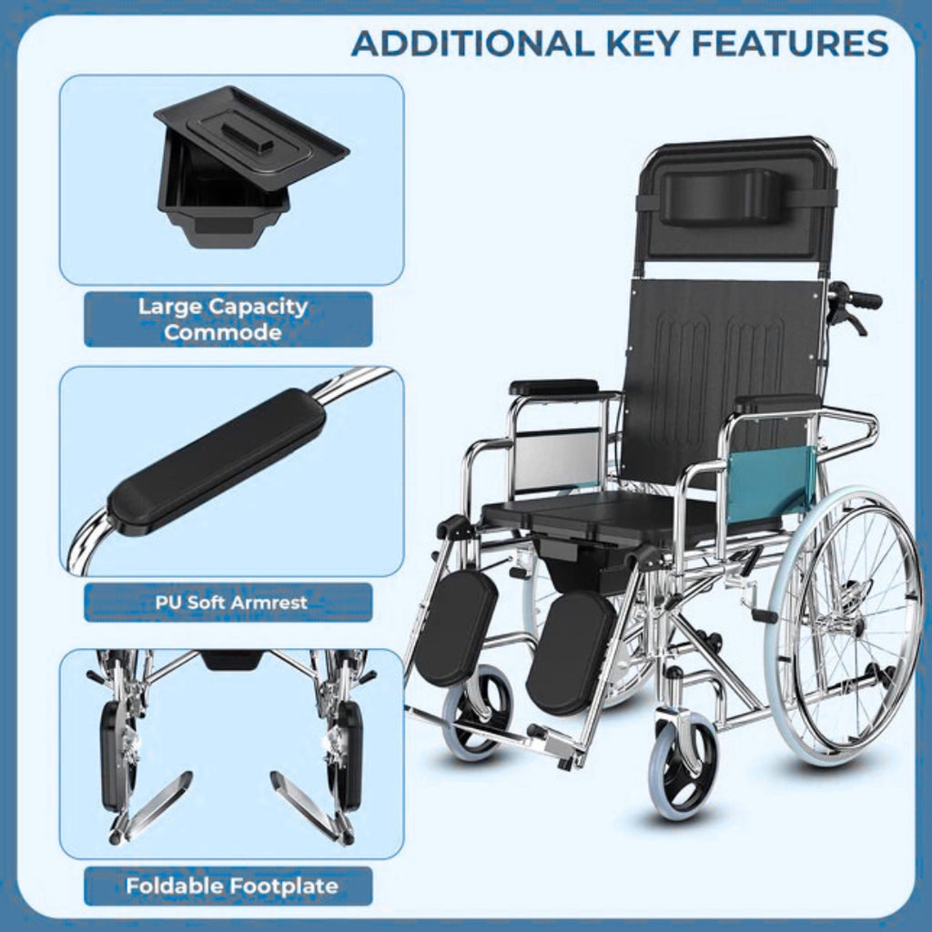 1. Commode Wheelchair, a functional mobility aid for the elderly, people with disabilities or injuries.